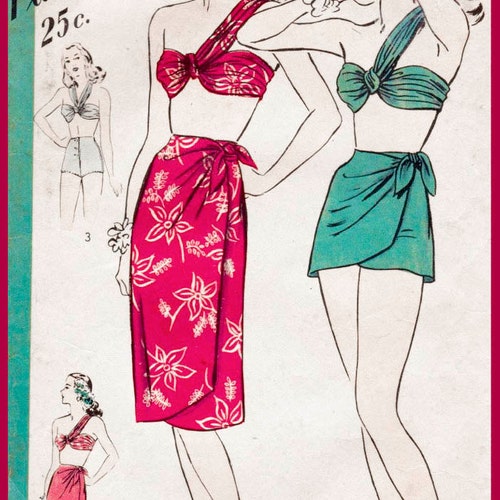 Vintage Sewing Pattern 1940s 40s Bikini Bra Wrap Skirt High Etsy